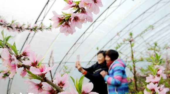 隨著天氣的轉(zhuǎn)暖,坐落在青州黃樓鎮(zhèn)的萬紅采摘基地,吸引了市區(qū)及周邊地區(qū)的游客前來踏青游玩,特別是基地中的大棚桃花更是贏得了游客的青睞。十九個(gè)溫室大棚七千六百余株桃樹已經(jīng)花團(tuán)錦簇,很多游客駐足觀看。